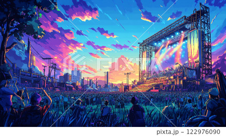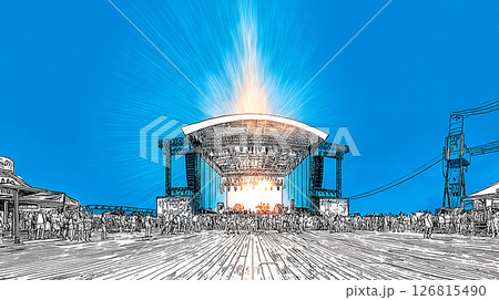 レーザー光線が交差するフェスステージの迫力あるビジュアル