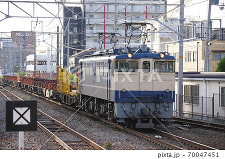 大久保駅を通過するEF65牽引上りレール輸送列車(工臨)