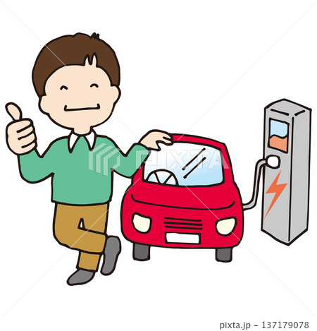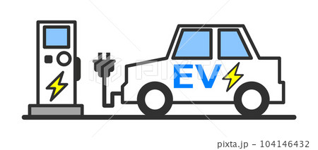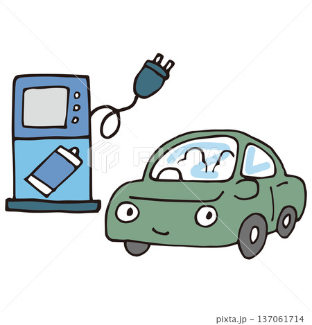 充電スタンドで充電をするEV自動車のイメージイラスト素材
