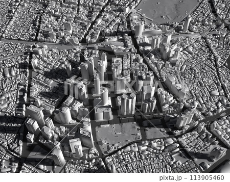俯瞰で見る超高層ビル街新宿の3DCG