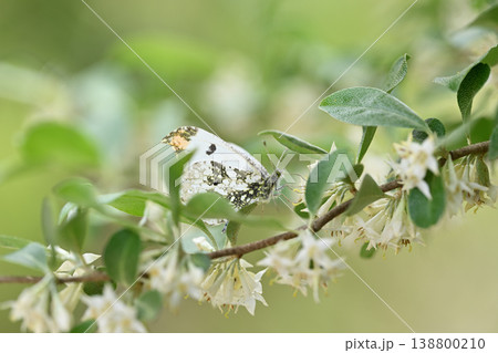 アキグミの白い花に訪花した小さなサカハチチョウ