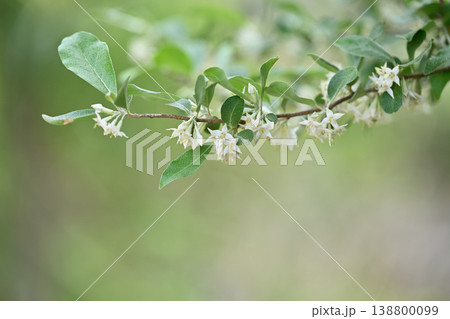 Elaeagnus multiflora flowers on a branch bloomed in the spring in the garden