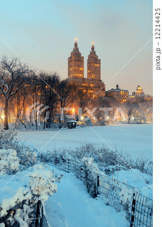 Skyline panorama with Eldorado building and reservoir in Central Park in midtown Manhattan in New York City