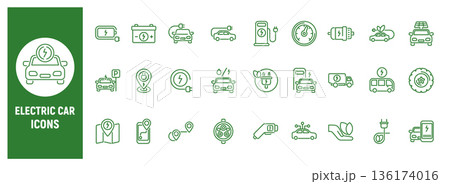 Electric car line icon set for charging and mobility