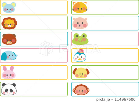 動物の顔お名前シール集_ぞう、ねこ、かえる