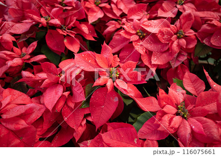 lot of poinsettia euphorbia pulcherrima Christmas red plant