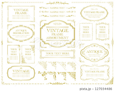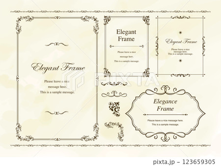 高級感のあるエレガンスなフレームセット、飾り罫、装飾デザイン、上品なあしらい