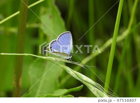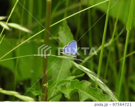草にとまるツバメシジミ