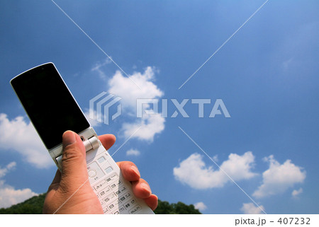 携帯を持つ手と空と山 画面映りこみ無し (新:再)