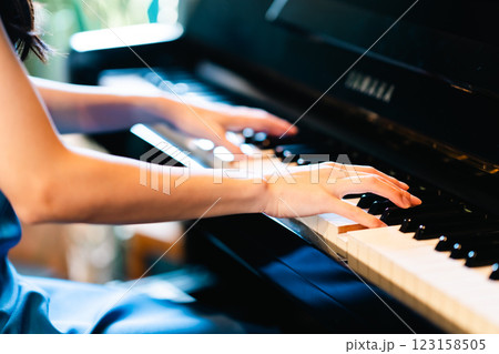 ピアノを弾く若い女性 顔無し