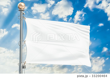 White flag waving in blue cloudy sky, 3D rendering