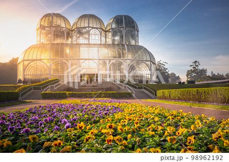 Public park around Botanical garden greenhouse in Curitiba, Parana, Brazil