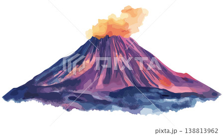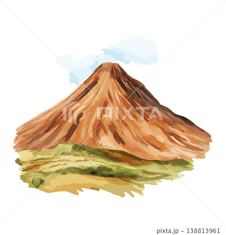 Fogo Volcano. Fogo Volcano hand drawn watercolor illustration on white background