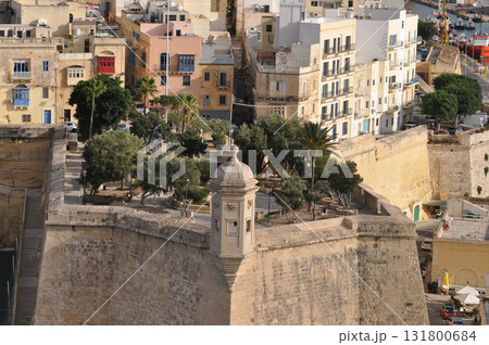 マルタ アッパーバラッカガーデンから眺めるビルグの町並みと聖アンジェロ砦、グランド・ハーバー