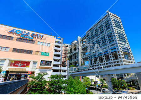 東京 港区台場の都市風景 アクアシティお台場とフジテレビ