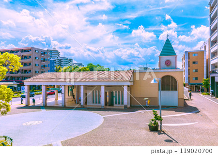 日本の横浜都市景観 横浜市営地下鉄グリーンライン 北山田駅やマンホールなどを望む