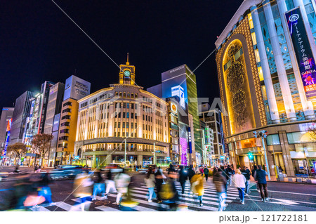 日本の東京都市景観 希望の光…外国人観光客らで賑わう銀座。右は三愛解体工事…輝きの時代へ=29日