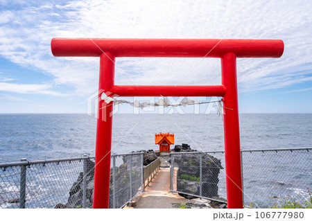 日本海に佇む北海道初山別村の金比羅神社の鳥居