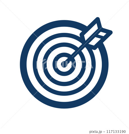 お正月のかわいい的矢のアイコン。青い線画の的と矢のイラスト素材。