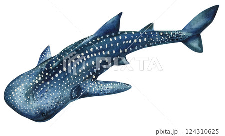 whale shark with spots underwater ocean creature sea animal. Watercolor painting marine life isolated clipart watercolor