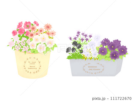 カラフルなお花の寄せ植え ガーデニングイラスト