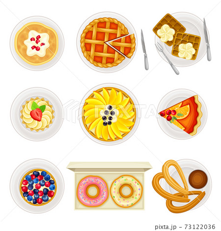 Sugary Desserts with Fruit Pie and Tart Served on Plate Vector Set