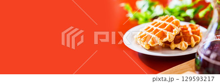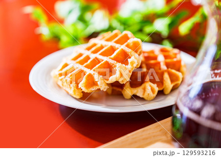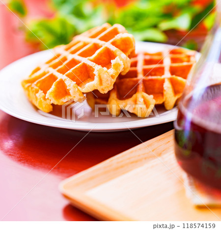 ベルギーワッフル で スイーツ タイム 【 洋菓子 の イメージ 】