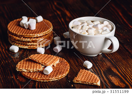 Stroop Waffles and Hot Chocolate with Marshmallow.