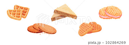 Layered Waffle or Wafer Desserts with Textured Surface Vector Set