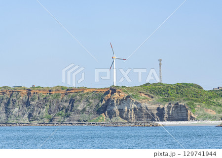 千葉県銚子市 有名な観光地 断崖絶壁が続く屏風浦と風力発電機