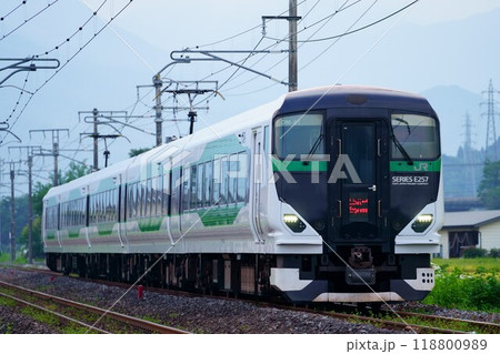 新緑の上越線を進むE257系・谷川岳もぐら号