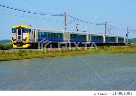田植えの季節に走る特急新宿わかしお 千葉県長生村の風景