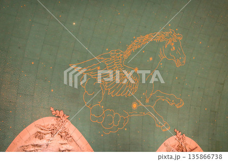 Pegasus zodiac constellation ceiling artwork in Grand Central Terminal, New York, USA. August 27, 2025
