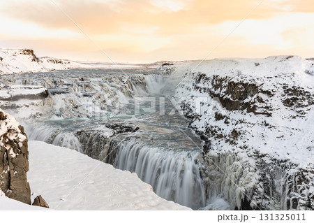 Gullfossの冬景色 アイスランドの壮大な滝と雪景色