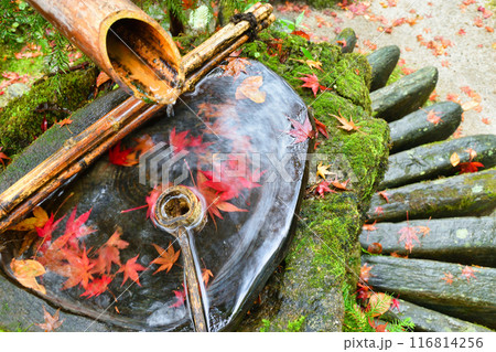 大原 宝泉院 宝楽園の美しい紅葉の手水鉢(京都府京都市左京区)