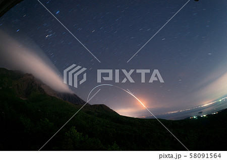 夜景 人工衛星こうのとり打ち上げ軌跡