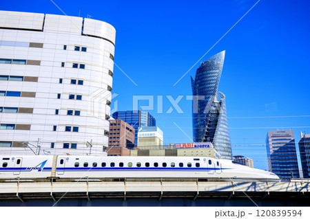 名古屋市、名古屋駅付近を走る東海道新幹線車両