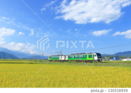 大糸線 黄金色の田園を行くリゾートビューふるさと