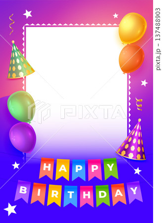 Happy birthday banners or frames for birthday wish card, letters, anniversary template, social media post, print, ad template, party or celebration decoration, memo, sticky note, cute notepad