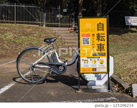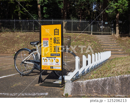 公共施設の駐輪場に設置されたシェアサイクルのステーション