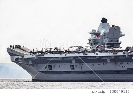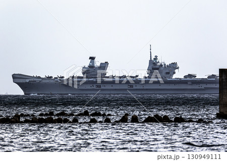 神奈川県横須賀海米軍基地に停泊中のイギリス(英国)海軍航空母艦プリンス・オブ・ウエールズ