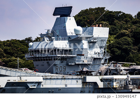 神奈川県横須賀米海軍基地に停泊中のイギリス(英国)海軍航空母艦プリンス・オブ・ウエールズ