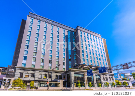 日本の横浜都市景観 桜木町駅前複合ビル・JR東日本ホテルメッツ横浜桜木町などを望む。左は桜木町駅
