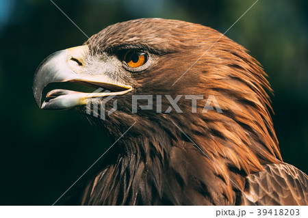 Sitting Golden Eagle Haliaeetus albicilla. Wild bird