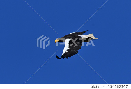 【北海道】青空バックを飛翔するオオワシ