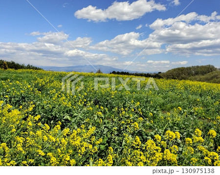 菜の花に囲まれた群馬県高崎市「鼻高展望花の丘」
