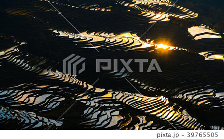 Laohuzui(Tiger Mouth) rice terrace at sunset, Yuanyang, Yunnan, China