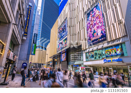 日本の東京都市景観 青空に映える池袋駅東口にあるハレザ池袋(左奥)やアニメイトなどを望む