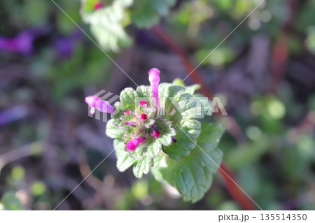 ピンクの花が咲いたホトケノザのアップ