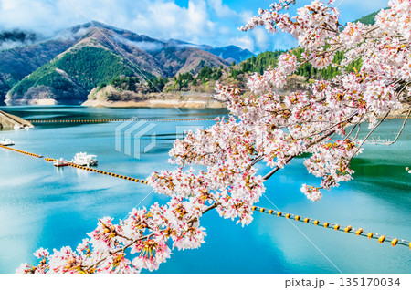 東京 奥多摩湖と湖畔の桜